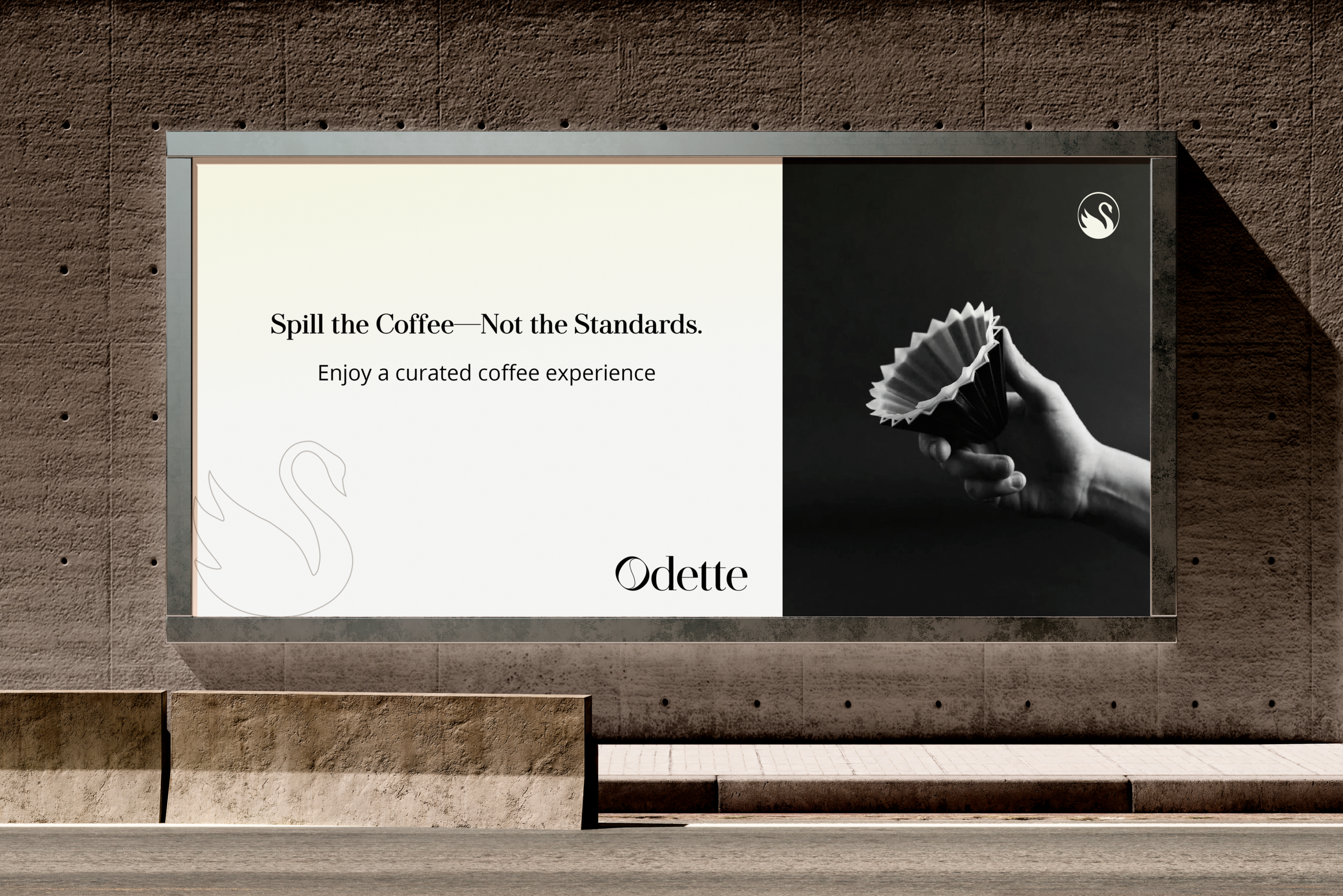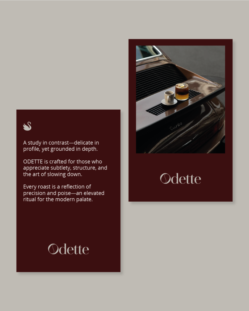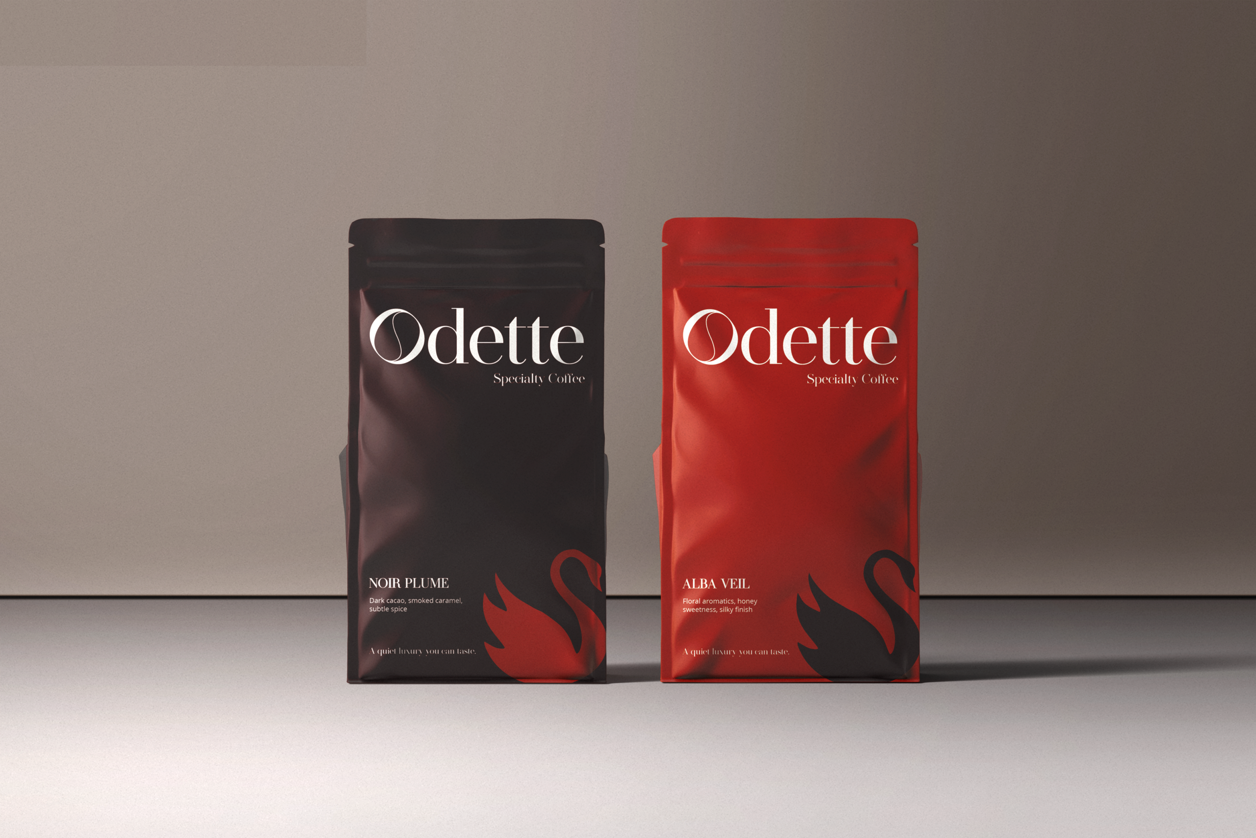 ODETTE is a premium coffee brand inspired by the elegance and duality of the white swan—soft in presence, yet powerful in form. The project explores how restraint, balance, and precision can shape a brand that feels effortlessly luxurious while remaining deeply functional.