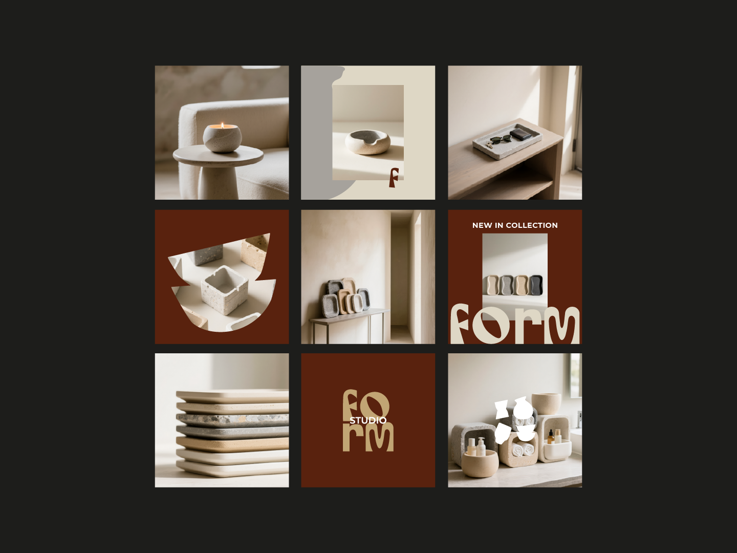 The visual identity was designed to be restrained and tactile. Minimal typography, neutral tones, and clean layouts allow the products to take center stage. Packaging and social graphics were treated as extensions of the objects themselves — calm, structured, and intentional.